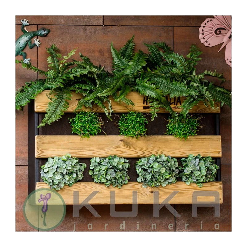 Para colgar el jardín vertical en la pared se ha creado el kit anclaje pared con tamaños correspondientes a cada jardín : 40x4x4 cm; 80x4x4 cm y 120x4x4 cm.
